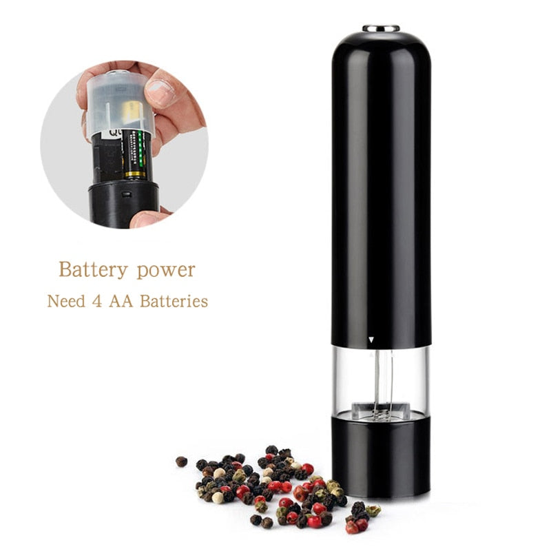 Dieser automatische Mühle funktioniert mit 4 AAA -Batterien. Der Schleifkopf besteht aus hochwertiger Keramik und die Dicke des Schleifs kann eingestellt werden. Der Mühlekörper besteht aus Bauchmuskeln. Am Boden befindet sich ein Licht, um das Essen klarer zu beleuchten.